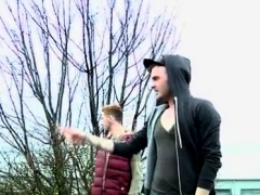 Gays outdoor threesome dick stuffed in